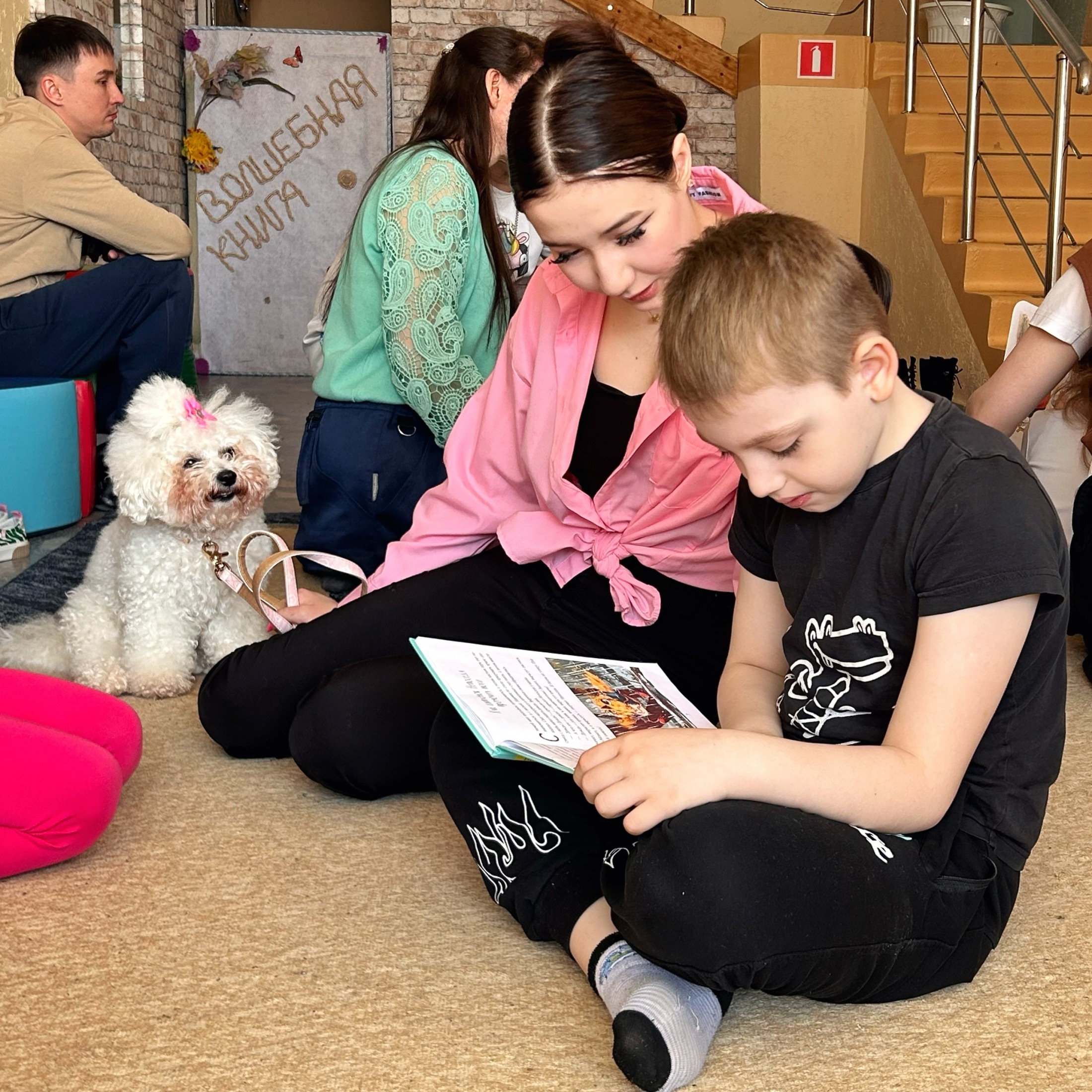 — Цикл мероприятий «Чтения с собакой» направлен на развитие навыков чтения у детей, а также на воспитание доброго отношения к животным. Дети читали вслух, находясь в компании дружелюбных собак, что создавало непринужденную и уютную атмосферу.