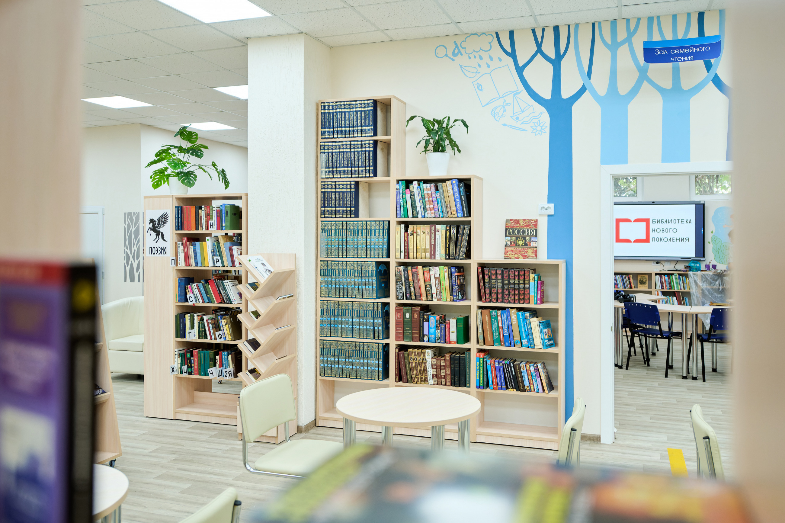 Первая модельная муниципальная библиотека в рамках нацпроекта «Семья» открылась в Пермском крае. Больше всего учреждений ― по 6 ― было переоснащено в Архангельской, Мурманской, Новосибирской, Омской, Оренбургской, Саратовской, Челябинской и Ярославской областях, Забайкальском крае, Донецкой и Луганской народных республиках.