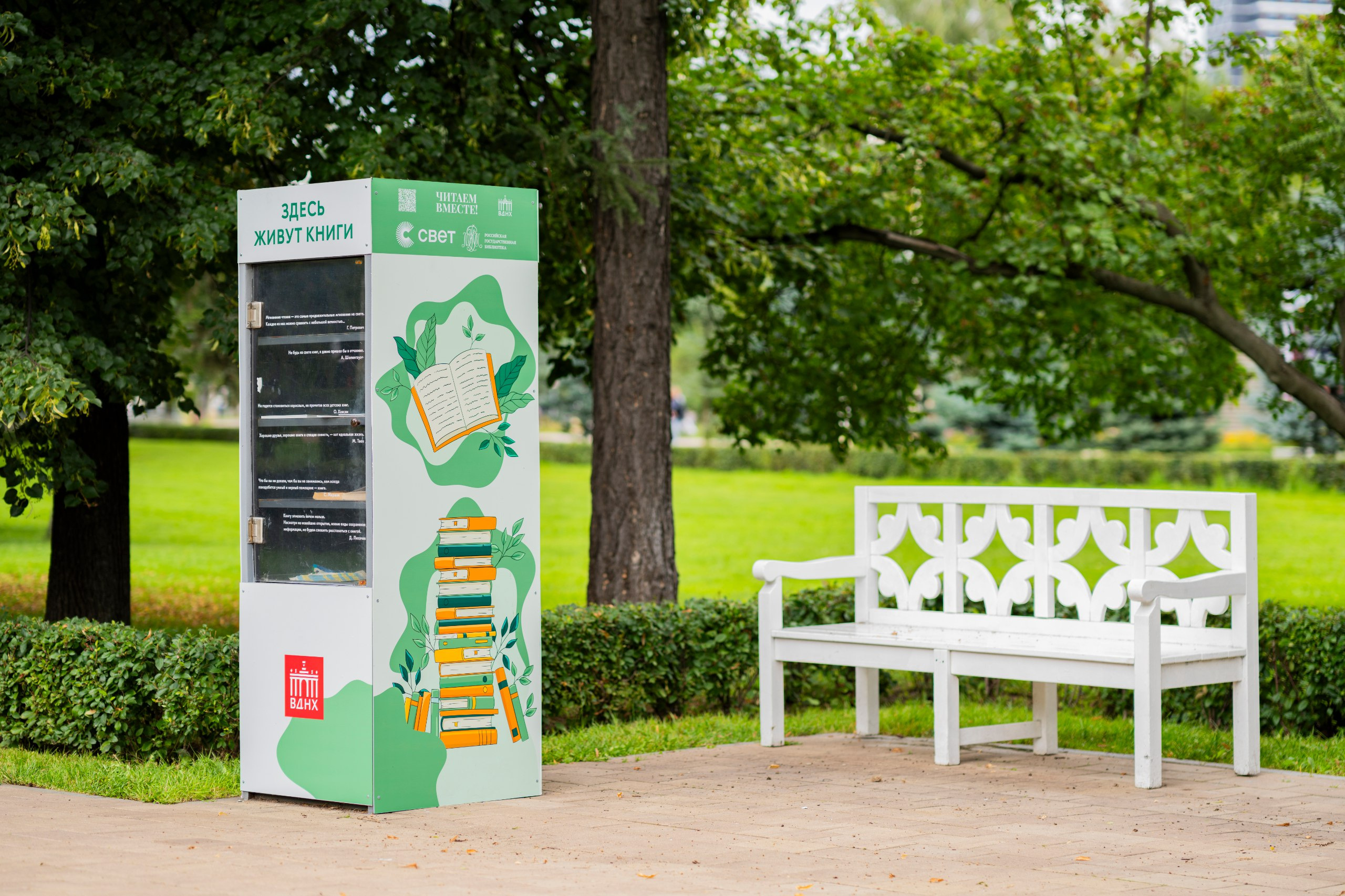 На читальнях в ВДНХ появились ссылки, ведущие на специальные коллекции книг: в Северном и Южном розариях для взрослых читателей, а возле Узбекского сквера — для детей.