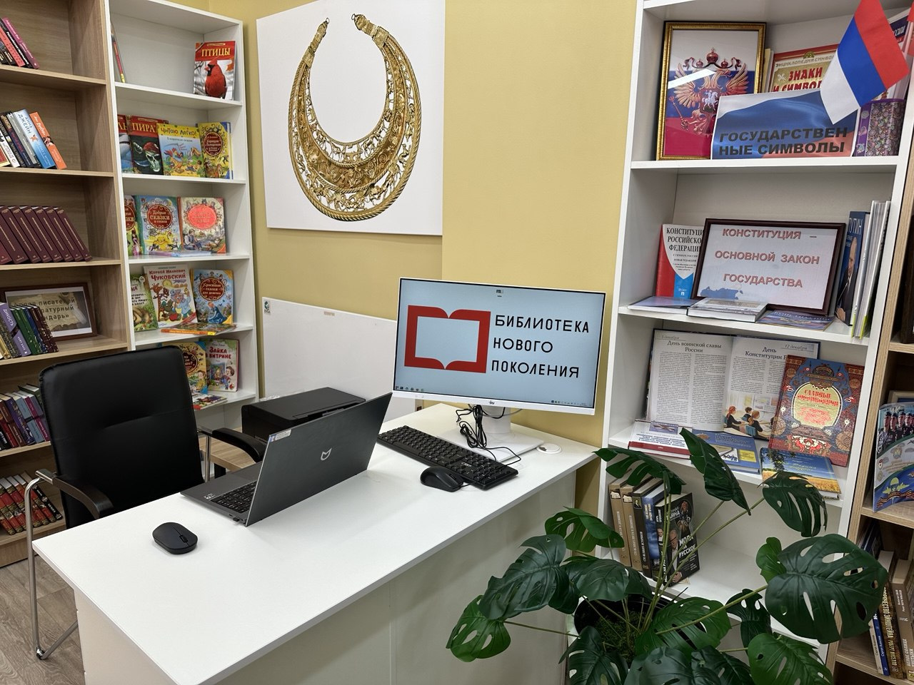 Наследие древних кочевников легло в основу дизайн-концепции. В модельной библиотеке появились тематические зоны: абонемент «Скифские сокровища», место для отдыха «Скифская пектораль» и зона «Скифская амфора».