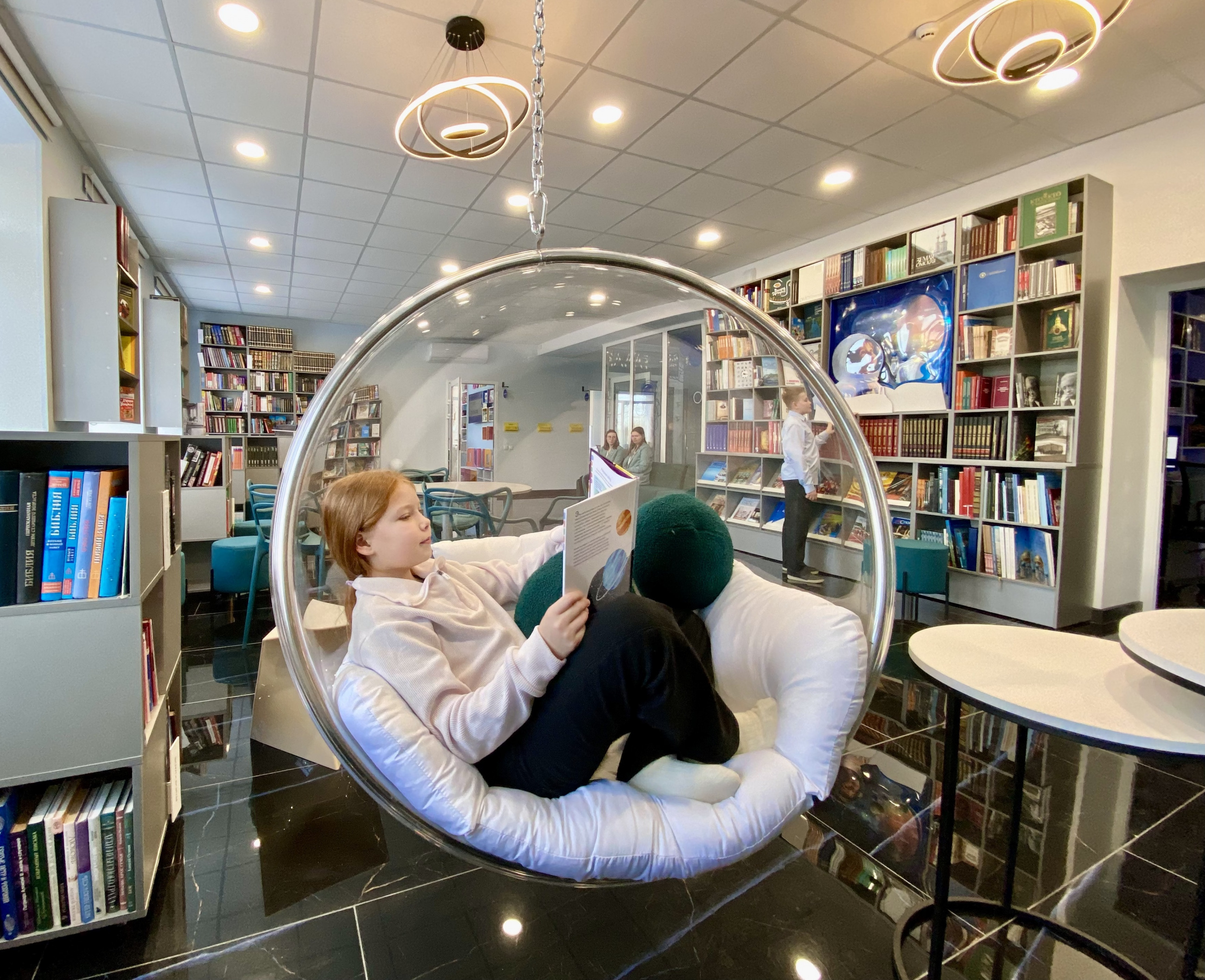 Основой концепции дизайна пространств Детской библиотеки «Книжная галактика» в Омске стала идея исследования космоса. Здесь запустят просветительский творческий проект, посвященный изучению Вселенной, и мультстудию «АниМагия». В литературном кинозале «Луна» будут проходить просмотры художественных, документальных и научно-популярных фильмов, а в клубе «Буквоград» дошкольников ждут развивающие занятия.